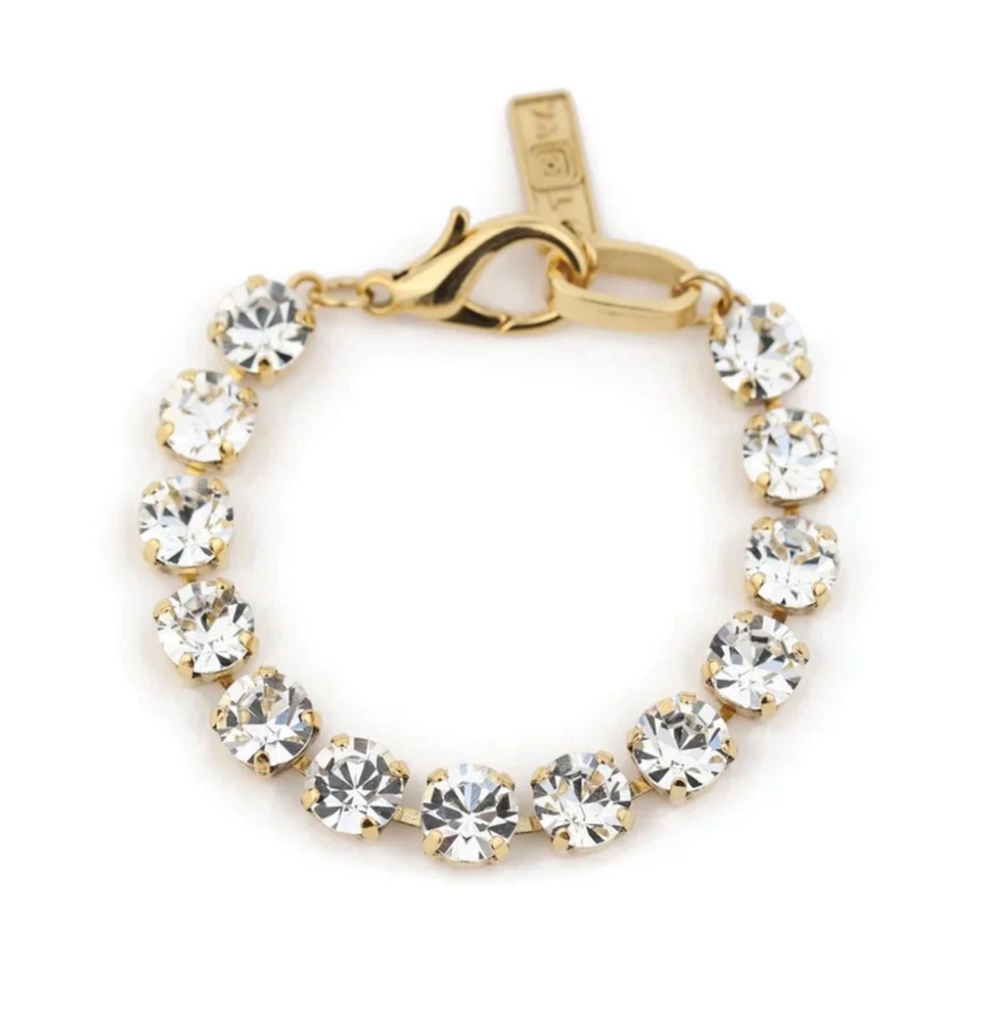 The Izzy Bracelet in Antique Gold is sure to be a standout item in your jewelry collection. Classy without being too stuffy, it's the perfect balance of antique gold plating, brass-based metal, and sparkling high quality crystals. With 8mm stones. Crafted with care in Canada, it's "Made in the North" style at its finest. This bracelet is a dainty yet statement-making accessory!
